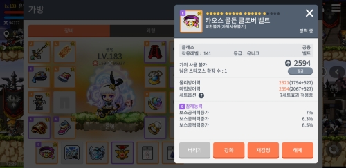 메이플스토리 타일런트 벨트 블랙큐브 멸망전