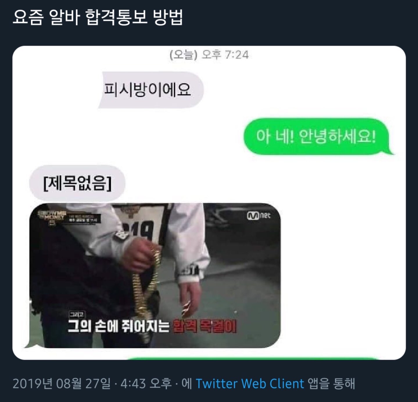 쇼미더머니 짤 그의 손에 쥐어지는 합격 목걸이 및 패러디 모음
