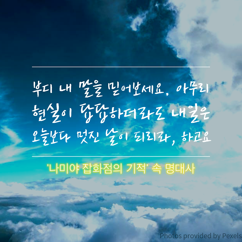 나미야 잡화점의 기적 명대사 중 내일은 오늘보다 멋진날이 되리라