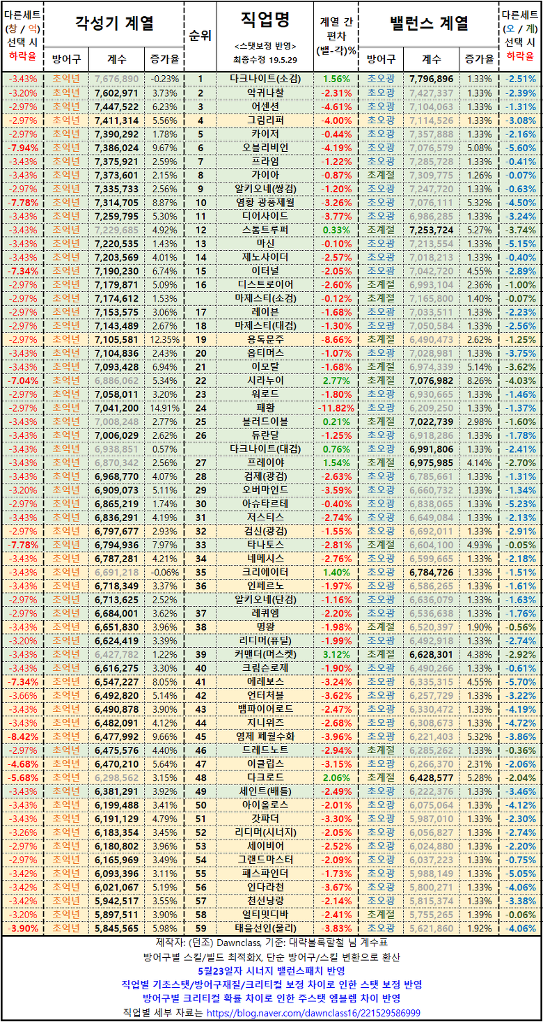 던파 직업계급표 5월 투표결과 공개 네이버 블로그