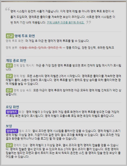 새시즌 명예 변경 정보 Lol 인벤