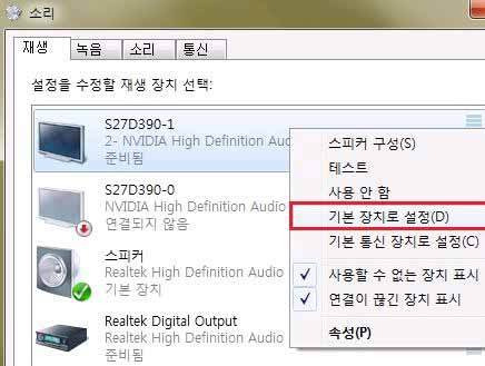 Hdmi 연결시 모니터에서 소리가 안날 때