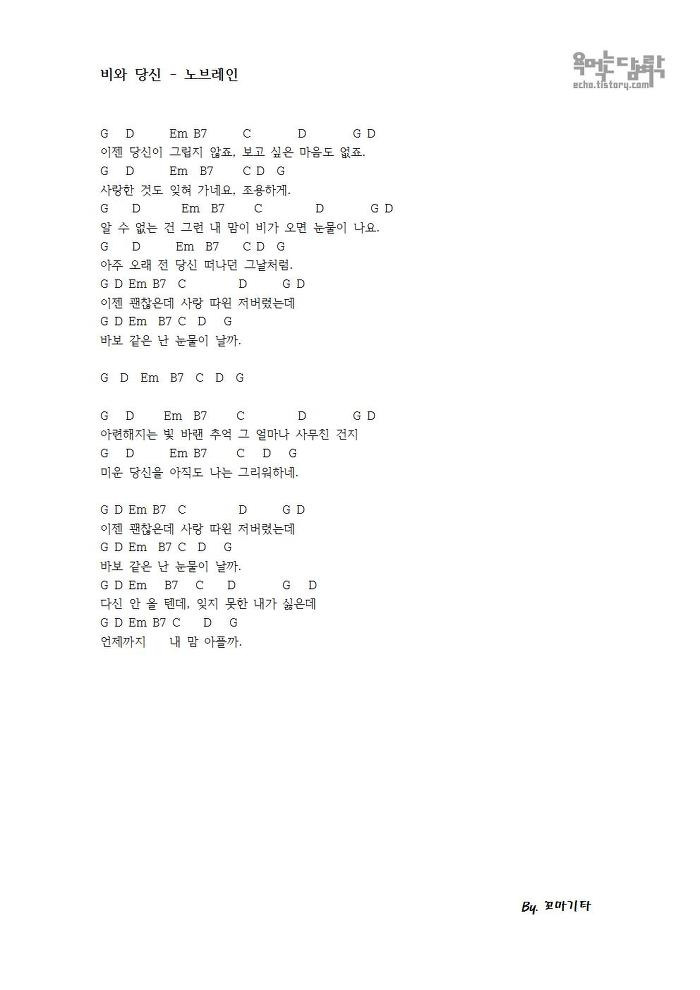 비와당신 기타코드 통기타악보 쉬운코드 럼블피쉬 네이버 블로그