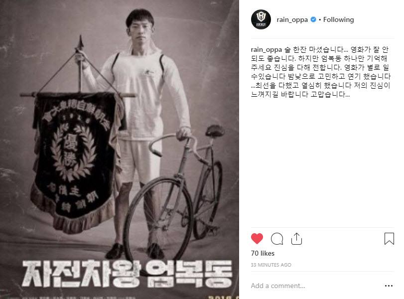 술 한잔 마셨습니다 비가 술 먹고 올렸다가 지우고 다시 올린 영화 엄복동 개봉 전 심경글 위키리크스한국