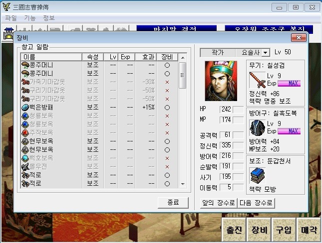 삼국지 조조전 치트엔진으로 조작해보기 6 레벨 및 장비 아이템 변경하기