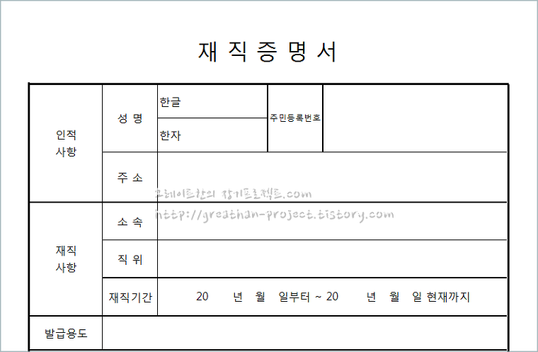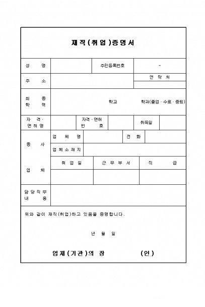 무료 서식 재직증명서 양식 무료 다운로드