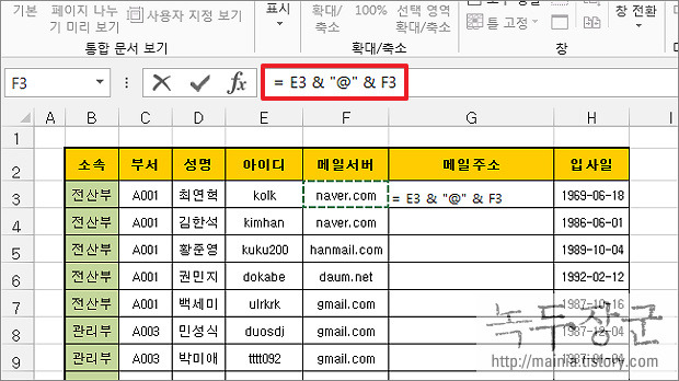 엑셀 텍스트 합치기 총정리