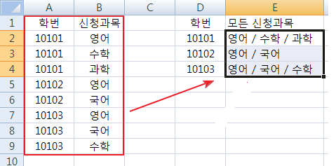 엑셀 문자열 합치기 Excel 텍스트 합치기