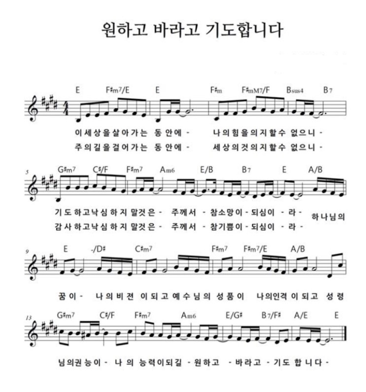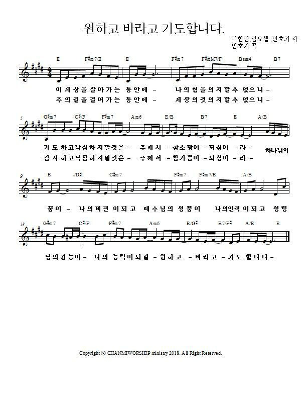E 원하고 바라고 기도합니다 악보 및 Ppt