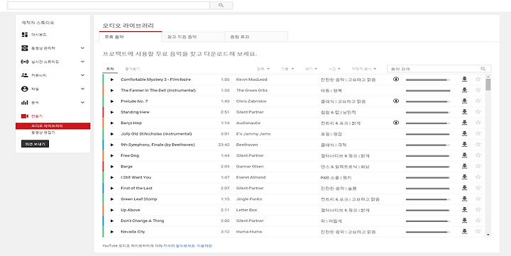 무료음악 무료음원의 도서관 유튜브 오디오 라이브러리 Youtube