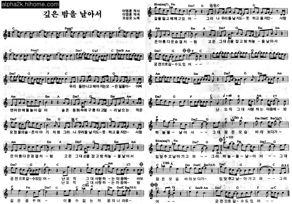 K의 코드 악보나라 이문세 깊은밤을 날아서