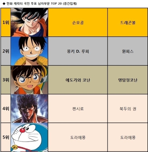 일본 만화 캐릭터 인기 순위