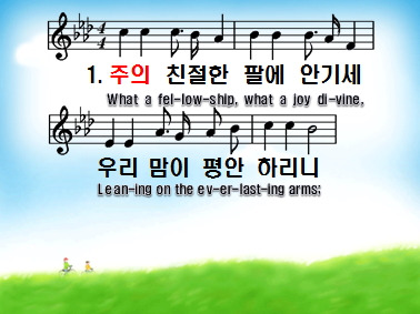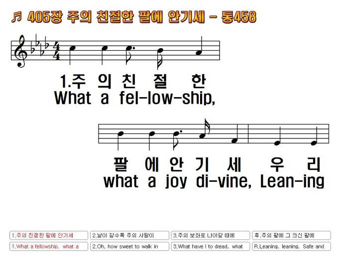 새찬송가 한영 405장 주의 친절한 팔에 안기세 What A Fellowship What A Joy Divine 통합찬송가 458장 Nwc 무배경 Ppt악보 Praise Worship Service