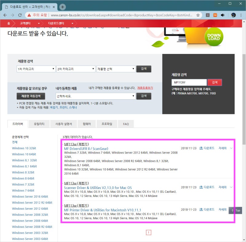 캐논 프린터 복합기 드라이버 다운로드 방법