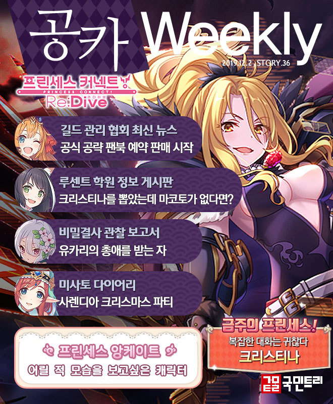 게임메카 공카 위클리 12월 1주차 공식 공략 팬북 출간 눈길 공략 게시판 프린세스 커넥트 Re Dive 공식카페
