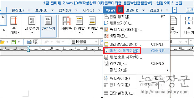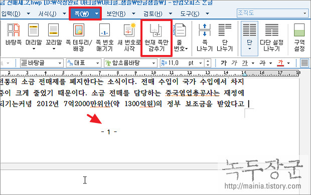 한글 쪽번호 없애기 수정 매기기 쉽고 간단하게 네이버 블로그