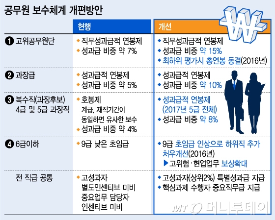 공무원 성과연봉제 5급까지 확대 성과급 비중 2배로