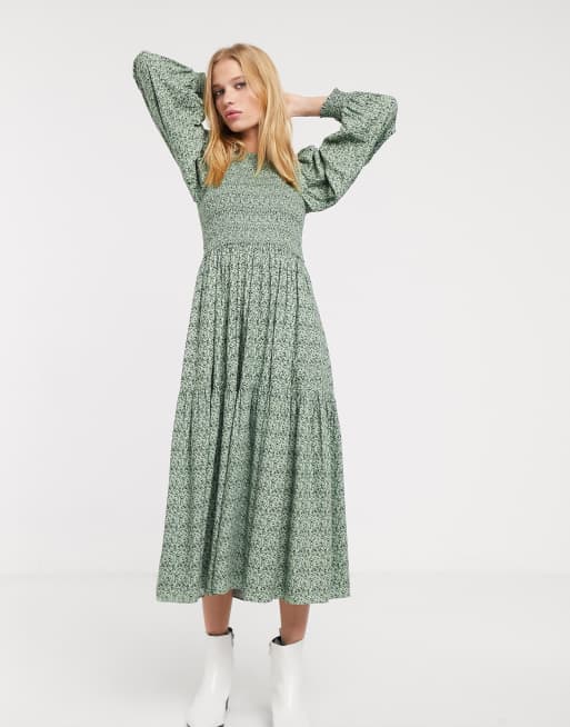 Other Stories Grunes Gesmocktes Prairie Kleid Mit Kleinem Blumenmuster Asos