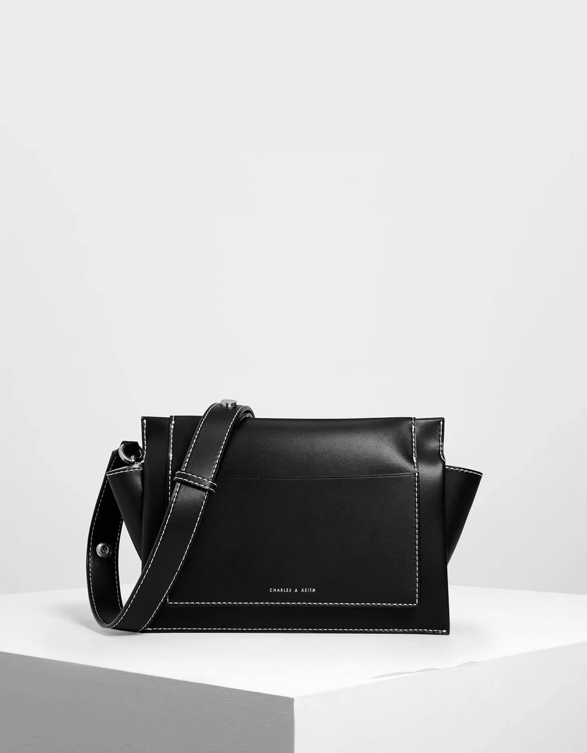 4292 Black Charles Keith Push Lock Shoulder Bag