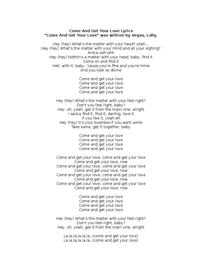 Come And Get Your Love Text