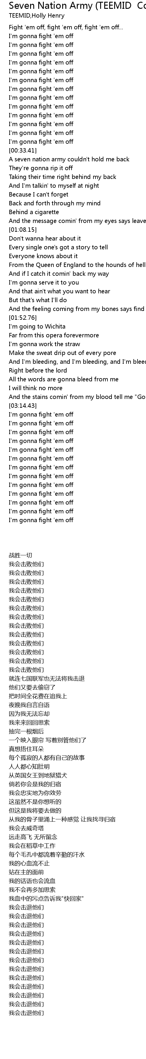 Seven Nation Army Teemid Cover Lyrics Follow Lyrics