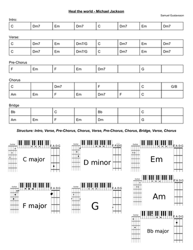 Heal The World Michael Jackson Lead Sheet For Guitar Bass And Piano Teaching Resources