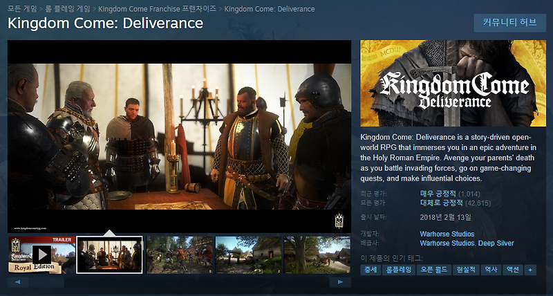 최근 유저 한글 패치 나온 킹덤 컴 딜리버런스 Pc 스팀 주말 무료 이벤트