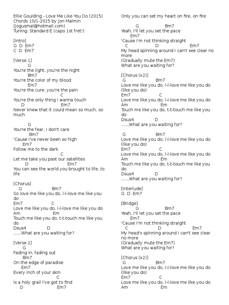 Love Me Like You Do Ellie Goulding Lyrics And Chords Youtube