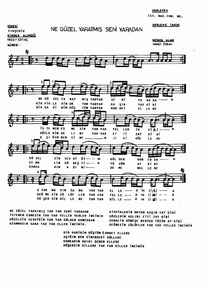 Ne Guzel Yaratmis Yar Yar Seni Yaradan Notalar Sozleri