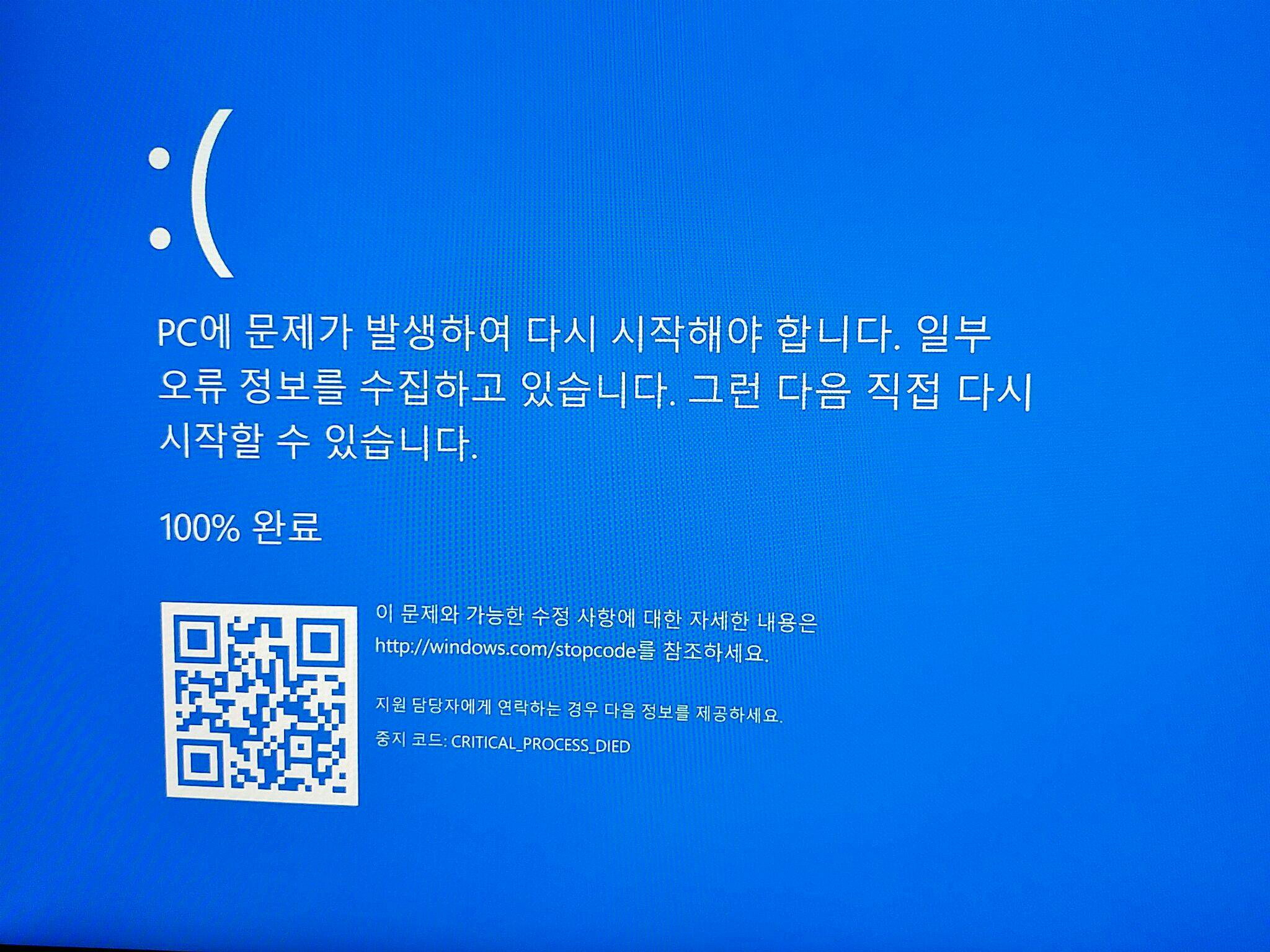 Pc에 문제가 발생하여 다시 시작해야 합니다 Critical Process Died