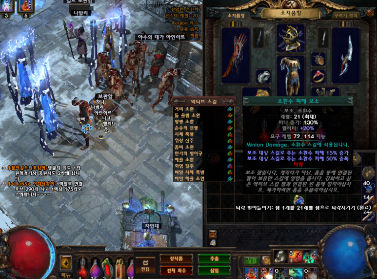 한글판 Pob 다운받으시고 플레이합시다 패오엑 인벤