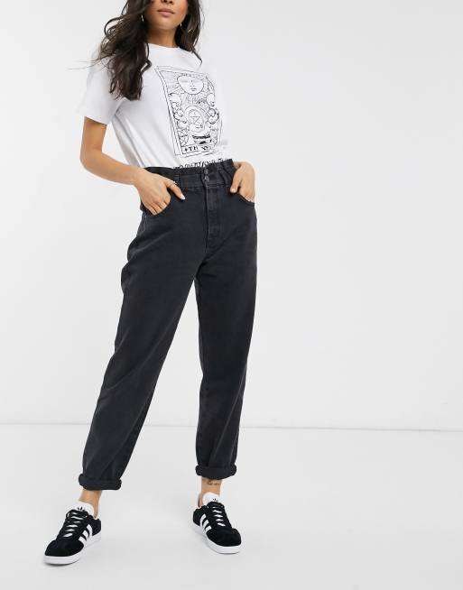 Pull Bear Mom Jeans Mit Elastischem Taillenbund Und Zwei Knopfen In Schwarz Asos