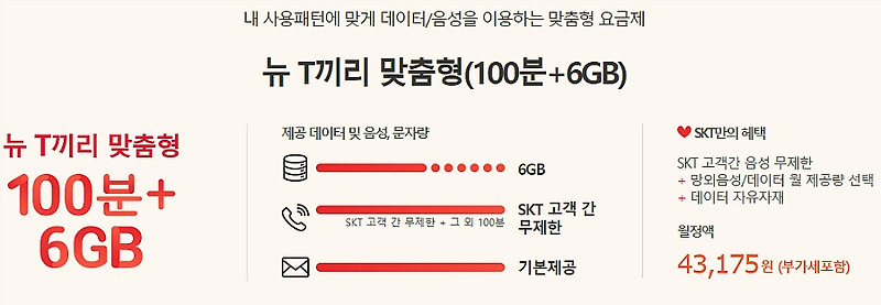 Sk 요금제 추천 T플랜 T끼리 맞춤형 요금제