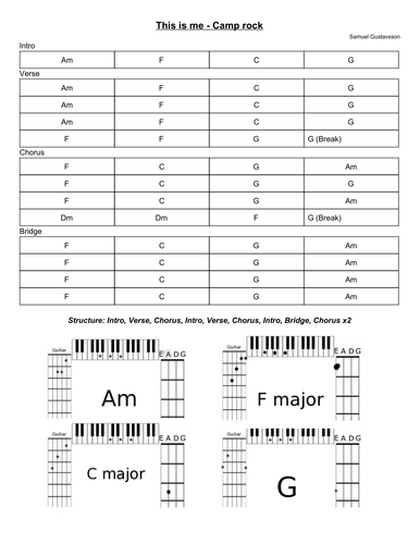 This Is Me Camp Rock Lead Sheet For Bass Guitar And Piano Teaching Resources