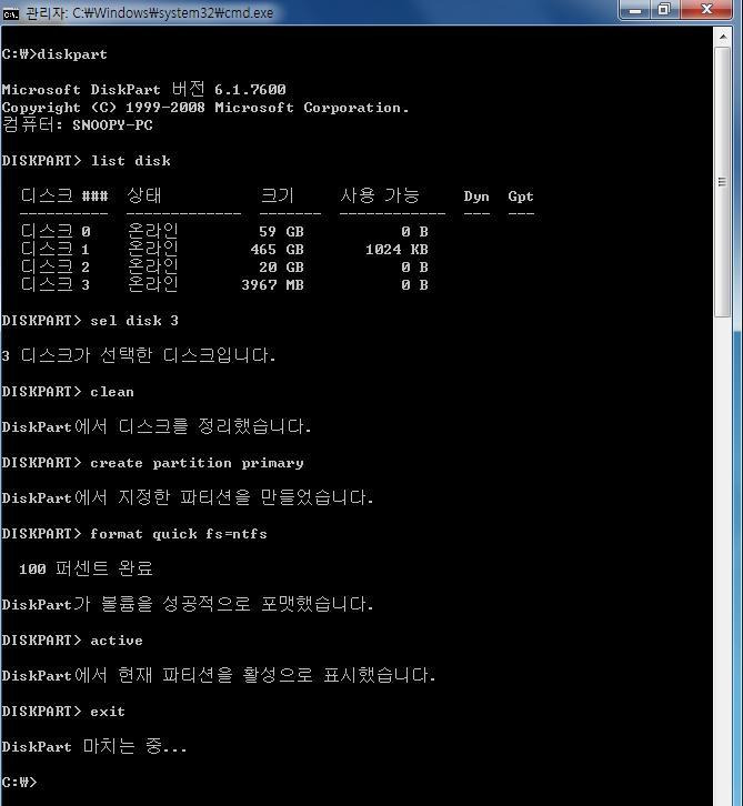 윈도우7 포맷 Usb 부팅디스크 만들기 드라이버 설치